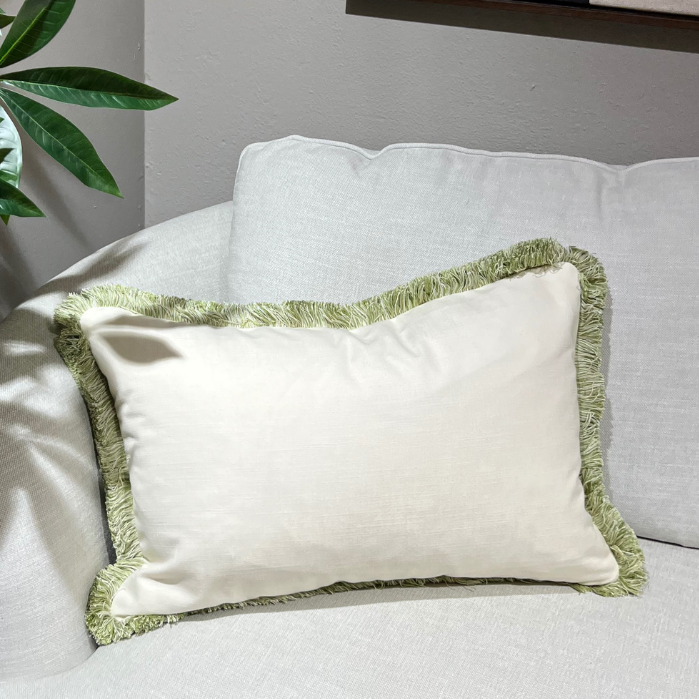 Sidenkudde med tofsar i Baguru grönt och guld
