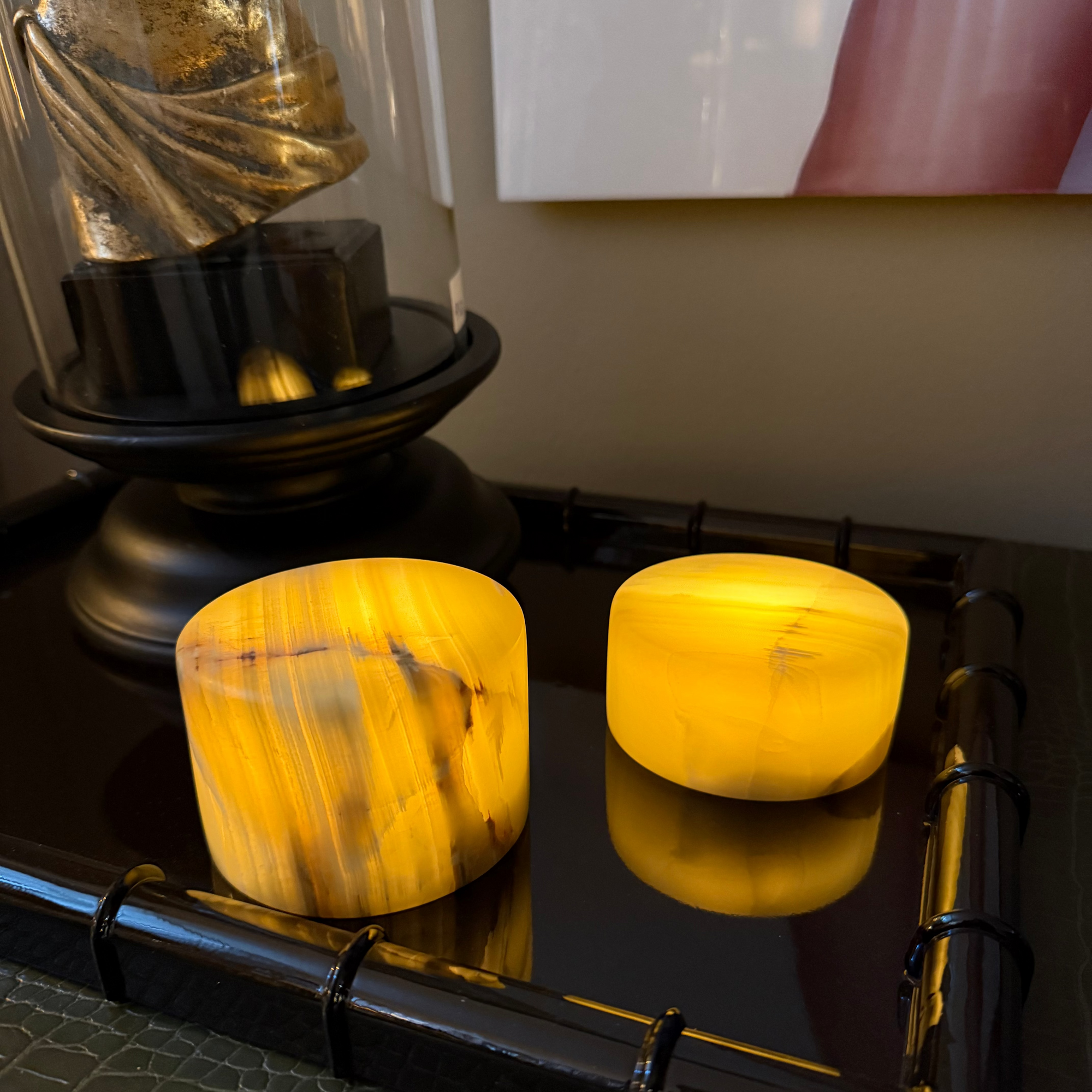 Ge ditt hem en unik och stämningsfull touch med våra lysande marmorstenar. Dessa exklusiva dekorationsstenar kombinerar naturlig marmor med inbyggd belysning som skapar ett mjukt, varmt sken – perfekt för att lyfta fram detaljer eller skapa mysig atmosfär.